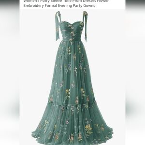 Design Features:Flower Embroidery Tulle Prom Dresses,Spaghetti Straps,Long/Floor Length,Sweetheart neckline,elegant hem,A-Line Silhouette,Built-In Bra,high waist,backless/open back, lace-up,Novelty style.