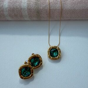 Elegant Green Gemstone Jewelry Set Stainless Steel Gold plated