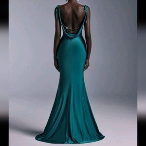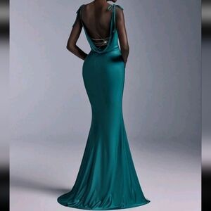 Elegant Green Halter Neck Shoulder Strap Bow Back Large Open Back Swing Neck