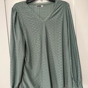This elegant green blouse features a delicate lace design and a flattering V-neckline. Perfect for any occasion.