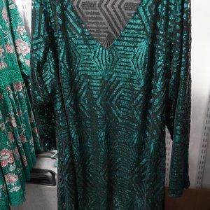 Shine in this stunning green sequin dress, perfect for any special occasion. The shimmering design adds a touch of glamour to your wardrobe.