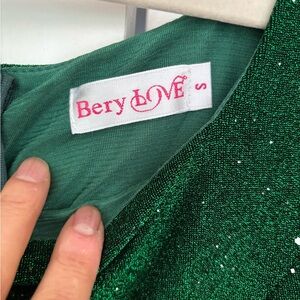 This elegant green dress is perfect for the Christmas Holidays. Its shimmering fabric adds a touch of glamour to your wardrobe. Worn once.