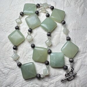 Women’s Necklace Serpentine And Quartz Gemstone Toggle Clasp Statement 4018 P