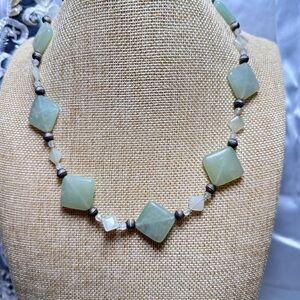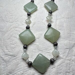 Elegant Green Serpentine and Quartz Natural Gemstones Stone Necklace 4018 P