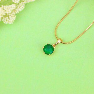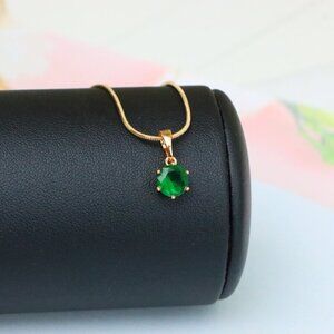 "Elegant Green Solitaire Pendant in Gold – Radiant Accent, XPPT1641
