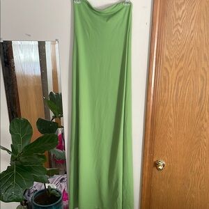 Step out in style with this elegant green strapless dress. 90% Nylon 10% spandex. Machine washable.