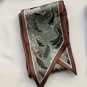 Add a touch of elegance to your look with this stylish green and brown hair scarf. Perfect for any occasion.