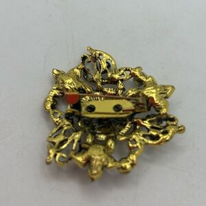 New without tags This elegant brooch features a stunning green and gold floral design, perfect for adding a touch of sophistication to any outfit.