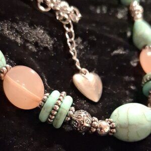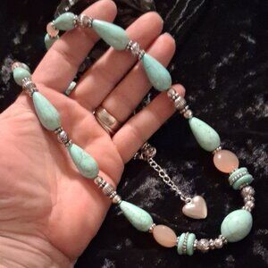 Elegant Green and Pink Beaded Necklace and Bracelet Set