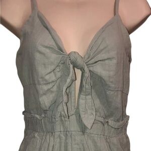 This elegant sleeveless romper features a stylish tie-front design, perfect for any occasion. The soft green color adds a touch of sophistication to your wardrobe.