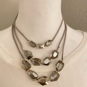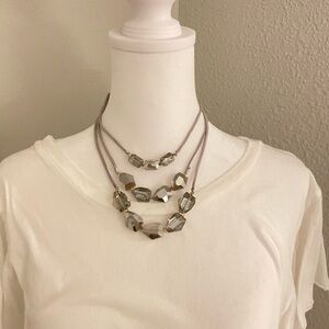 Elegant Grey Multi-Strand Necklace with Gold Accents NWT