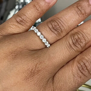 * Design: Classic and timeless, this half eternity band offers a seamless circle of shimmering moissanites, symbolizing eternal love and devotion.