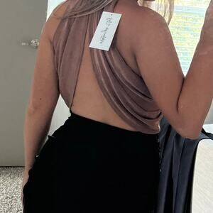 This elegant halter neck top features a stylish drape design, perfect for any occasion. The rich brown color adds a touch of sophistication to your wardrobe.
