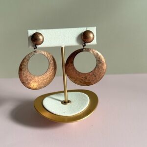 Chic hammered copper hoop earrings. Ideal for adding a touch of elegance.