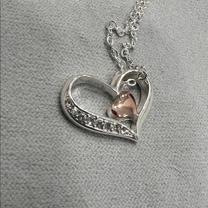 Elegant Heart Pendant Necklace in Silver and Rose Gold