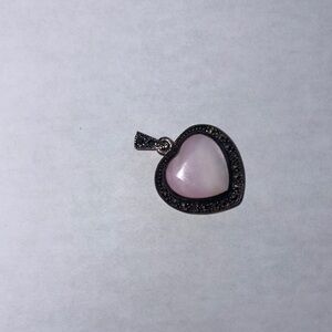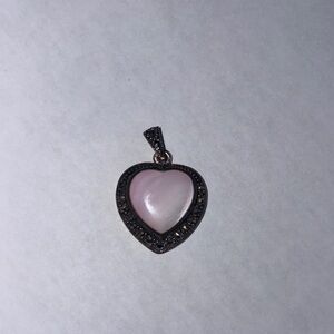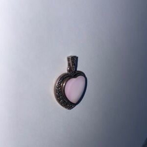 This elegant heart-shaped pendant features a beautiful pink stone, perfect for adding a touch of romance to any outfit. The intricate design is both timeless and versatile.