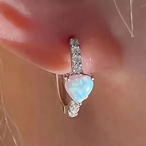 Elegant Heart Shape Opal Silver Hoop Earrings Round Huggie Crystal Detail Classc