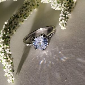 Elegant Heart Diamond White Baguette Diamonds on Ring Cocktail Ring 925 Silver