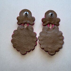 Add a pop of color to any outfit with these elegant hot pink fabric earrings. The teardrop-shaped crystals and stones are securely set in a prong setting, giving these earrings an Art Deco feel. Handmade with faux leather, fabric, and crystal materials, these earrings are a stylish addition to any jewelry collection.