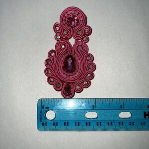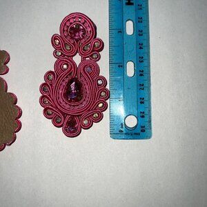 Elegant Hot Pink Fabric Earrings Crystals Stones Dangle Drop Handmade Elegant