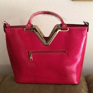 This stylish hot pink handbag features elegant gold accents, perfect for adding a pop of color to any outfit. Ideal for both casual and formal occasions.