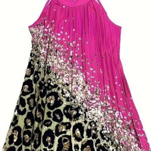 Elegant Hot Pink, Sparkly Leopard Print Pleated & Sleeveless Dress, NWOT