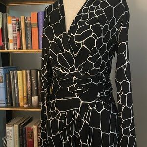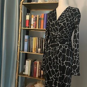 This is exactly the style she wore for her engagement announcement, in a timeless black and white pattern.