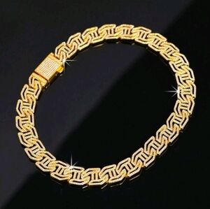 Elegant Iced Out Fully Rhinestone Figaro H-shape Design Hip Hop Gold Chain Necklace is so shiny and very beautiful in person.