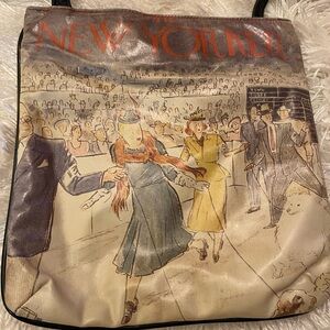 Step out in style with this elegant illustrated tote bag. The black and cream design adds a sophisticated touch to any outfit.