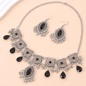 Elegant Indian Jewelry Set for Women: Necklace & Earrings - Oxidized Antique Des