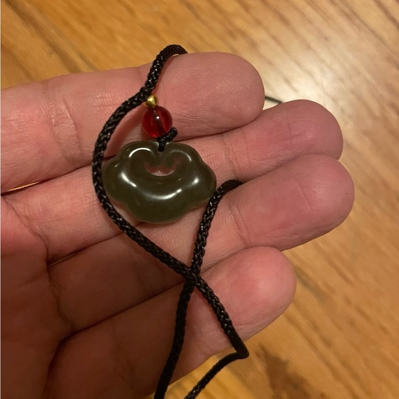 Discover elegance with this exquisite jade pendant necklace. Featuring a deep green jade stone complemented by a red accent bead, this piece adds a touch of sophistication to any outfit. Perfect for any occasion.