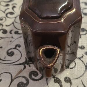 Charming brown ceramic teapot with intricate design. Perfect for tea lovers. Vintage teapot. The inner lid has a chip but cannotbe seen on the outside. All damage is pictured. Still a nice addition to ant collection.