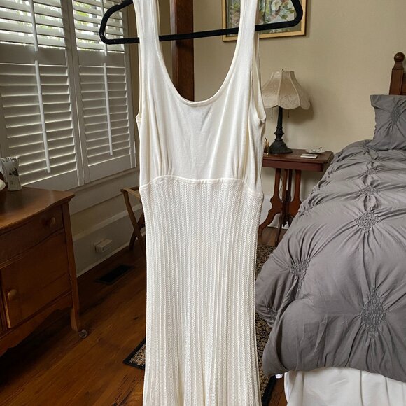 Step out in style with this stunning knit ivory dress by Grace Dane Lewis, in a versatile size Medium. This elegant piece features intricate lace skirt weaving, adding a delicate touch that makes it perfect for any occasion. Whether you're attending an Easter celebration, enjoying a leisurely brunch, or planning a romantic date night, this dress ensures you'll look effortlessly chic. Pet-free, smoke-free home.