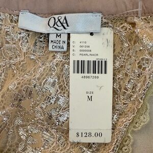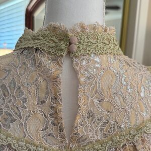 Elevate your style with this elegant lace blouse, featuring a delicate pearl/tan color. Perfect for any occasion.