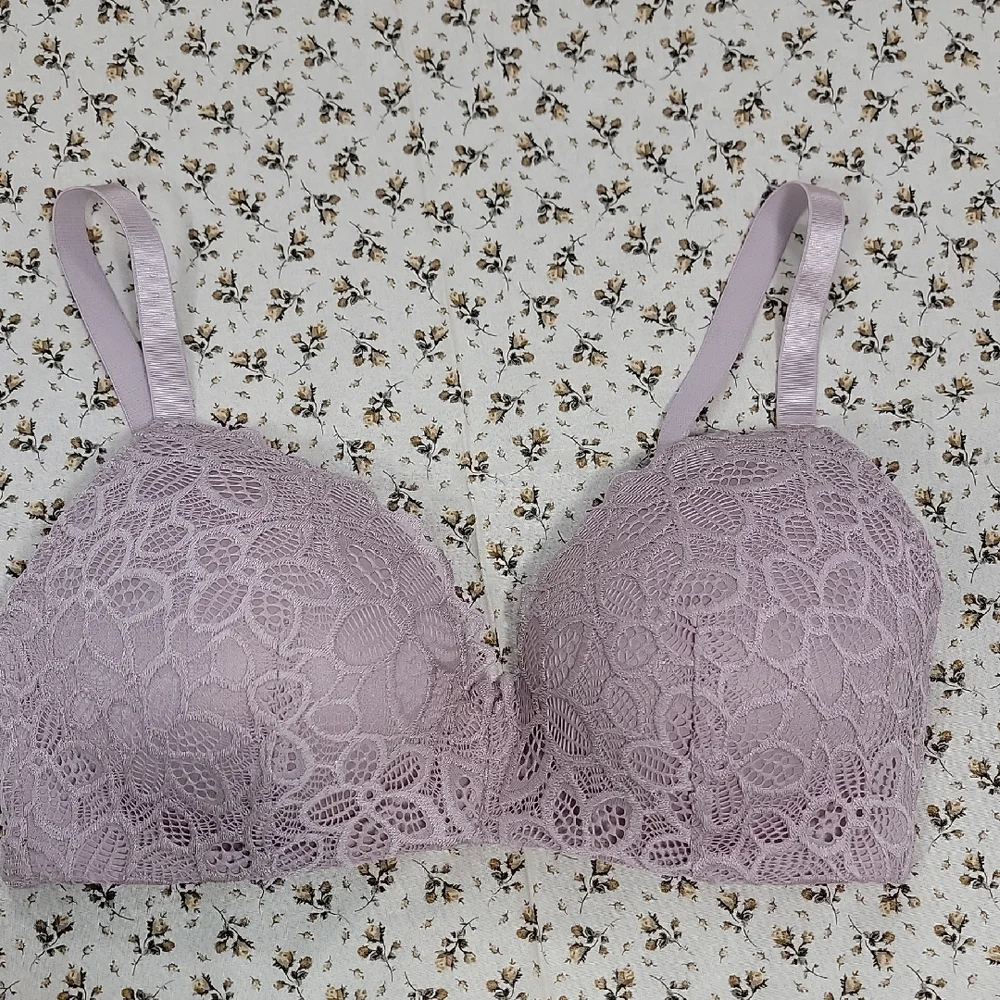 Experience comfort and style with this elegant lace bralette in a soft lavender hue. Perfect for everyday wear.