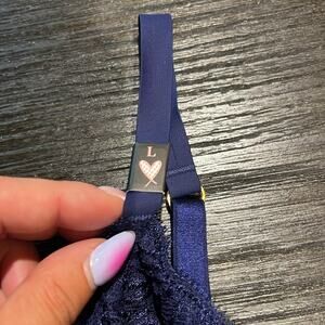 Experience comfort and style with this elegant lace bralette. The navy blue hue adds a touch of sophistication to your intimate collection. Perfect for everyday wear.