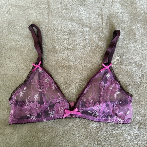 Elegant Lace Bralette in Purple and Pink Size S