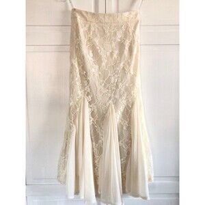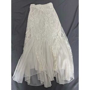 Stunning cream colored lace skirt featuring intricate floral lace overlay with a fitted waist and flowy A-line silhouette. The skirt hits at maxi length and has a romantic, perfect for special occasions, date nights, or boho-chic styling. Perfect for weddings, brunch dates, festivals, or any occasion where you want to look effortlessly elegant! Pairs beautifully with blouses, crop tops, or camisoles. Gentle worn, great condition, no tag.