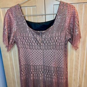 Step out in style with this elegant lace mini dress. Perfect for any occasion, this dress features a beautiful mauve color that adds a touch of sophistication to your look.