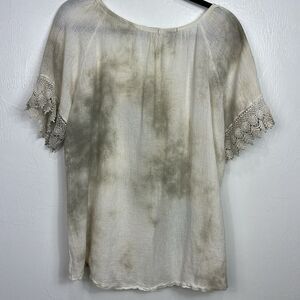 This elegant blouse features a delicate lace trim and a flattering scoop neckline. Perfect for any occasion, its off white/gray color adds a touch of sophistication to your wardrobe.