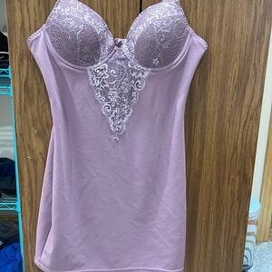 This elegant purple chemise features delicate lace trim for a touch of sophistication. Perfect for a comfortable and stylish night's sleep.