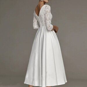 Elegant Lace V-Neck White Dress | Civil Wedding or Engagement Photo Shoot Gown