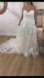 I bought this dress and lost a lot of weight, and decided to go with a different style dress. It is truly stunning (pictures do not do it justice), unique, and perfect for the bride that is going for a romantic ethereal vibe. Fits a size 16. Unaltered. Comes bustled. Lace pattern with sequins, it shines whenever you move! It has a long, beautiful train. Still has the tags on! The dress is ivory. Truly one of a kind dress. Price is negotiable!