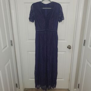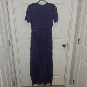 This stunning lace maxi dress features a rich blue hue, perfect for any special occasion. The intricate lace detailing adds a touch of elegance and sophistication. Ideal for evening events or formal gatherings.