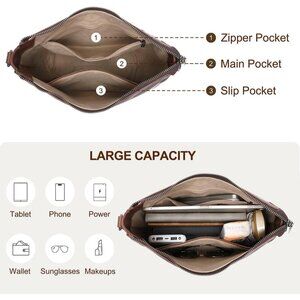 Features: This gorgeous genuine leather handbag features a silky faux suede lining and sturdy hardware, combining durability with style. It has a spacious main compartment that fits an 11-inch iPad, with a zip pocket and slip pocket inside, plus an exterior zip pocket. Perfect for organizing your essentials securely.