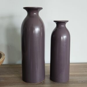 Enhance your home decor with this elegant set of lavender No. 1 ceramic vases. Perfect for adding a touch of sophistication to any room. preowned in excellent condition. very clean, no scratches. look perfect in any room.
