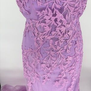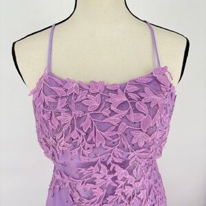 Elegant Lavender Lace Prom Gown with Floral Embroidery Open Back Size 4 Long