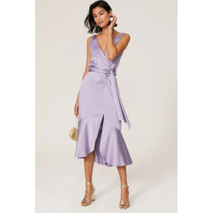 Step out in style with this elegant lavender midi dress. Perfect for any occasion, this dress features a flattering silhouette and a chic design. Ideal for adding a touch of sophistication to your wardrobe.