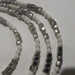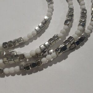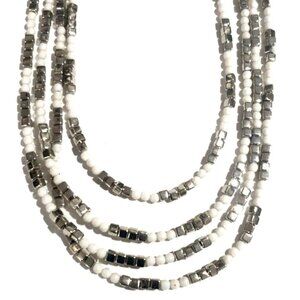 Add effortless sophistication to your style with this Layered Silver-Tone & White Beads 32-inch Long Necklace. Featuring multiple layers of silver-tone chains accented with delicate silver & white beads, this necklace creates a striking yet versatile look. Perfect for casual outfits or formal ensembles, this elegant piece is ideal for women seeking timeless and modern jewelry. The 32-inch length makes it easy to layer with other accessories or wear as a standalone statement.
