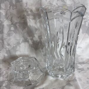 Enhance your home decor with this elegant crystal candle holder. Its clear design adds a touch of sophistication to any room.